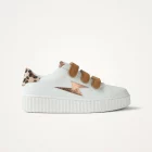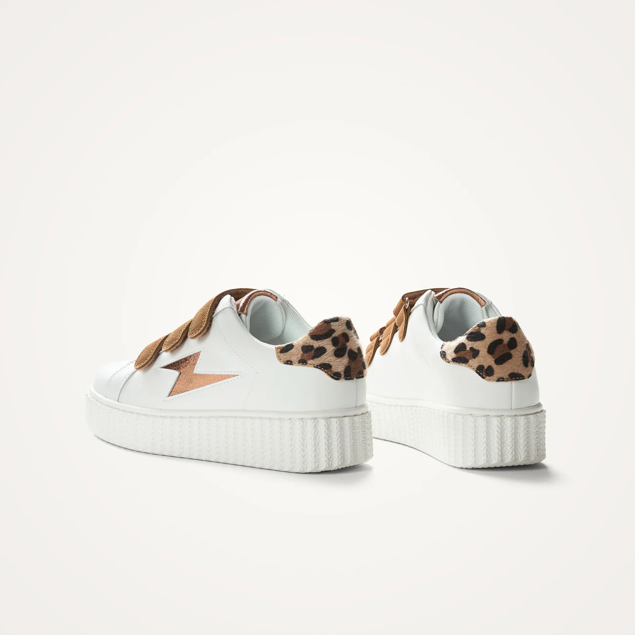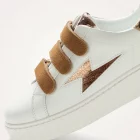 – Découpe en forme d’éclair en similicuir texturé bronze