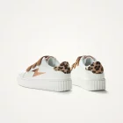 – Patch arrière en tissu beige effet poulain à imprimé léopard