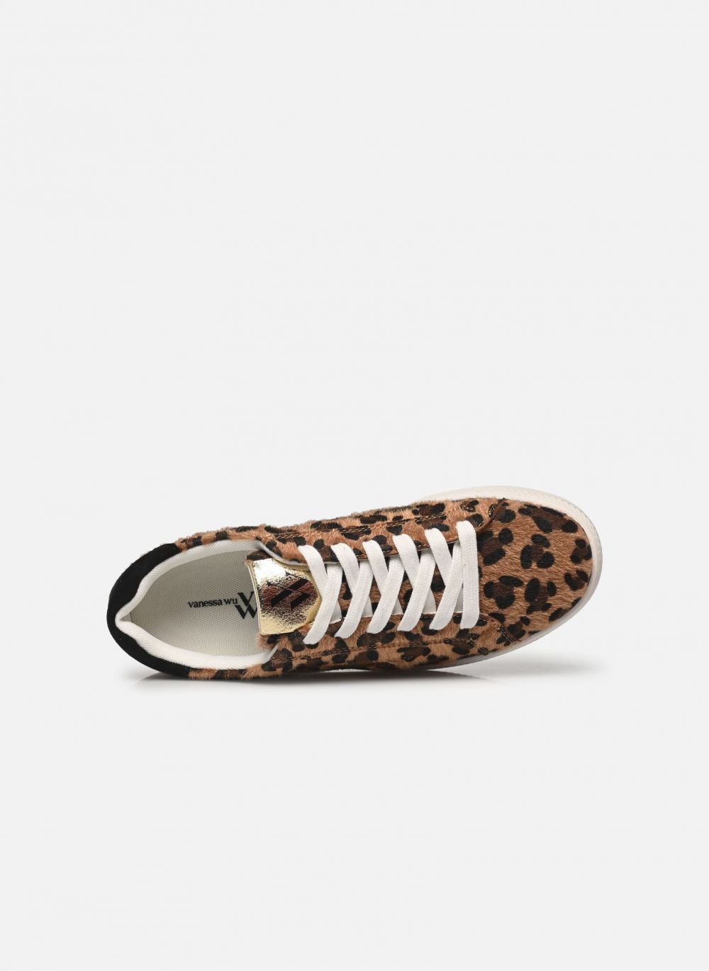 Basket mode de la marque Vanessa Wu de couleur blanc léopard. Une tige en simili fourrure léopard pour ces magnifiques baskets à lacets glamours à souhait ! Nommées Eléa, elles auront une place de choix dans votre garde robe glam et décontracte ! Une première textile et une semelle blanche souple pour ces baskets confortables signées Vanessa Wu.