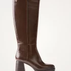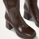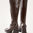 – Plateforme et talon recouverts de lamelles synthétiques marron effet bois