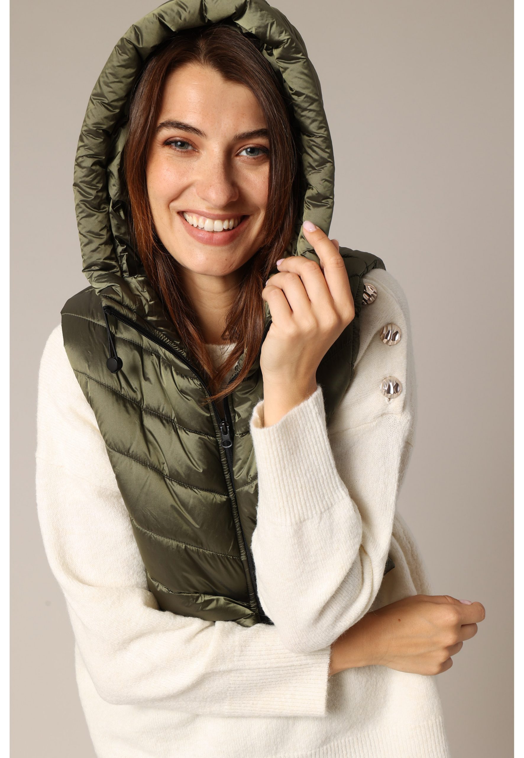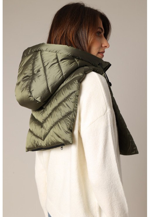 Ce col capuche matelassé zippé est une pièce originale à superposer sur vos pulls ou manteaux pour ajouter une touche tendance et protectrice.