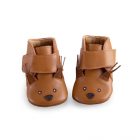Chaussons bébé écureuil en cuir souple, avec fermeture à scratch, à la forme large et arrondie adaptée aux pieds en pleine croissance. Doublés, ils disposent d’une semelle en cuir velours antidérapante et d’une semelle intérieure amovible avec mousse.