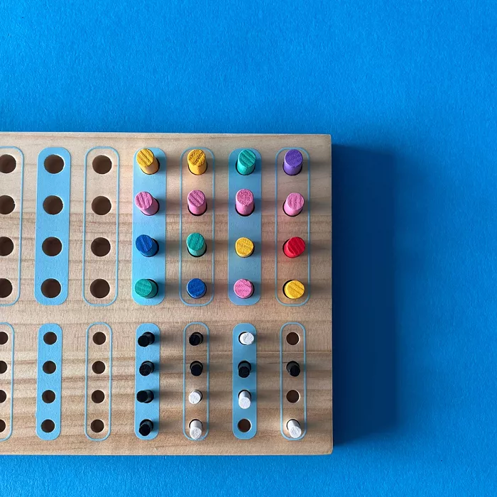 Jeu de réflexion où vous devez découvrir un code secret composé de 4 couleurs choisies par votre adversaire en utilisant le moins de lignes possible. Jeu en bois de la collection Les Loufoques qui convient à tous, petits et grands. 2 joueurs. 5 ans et +