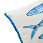 Invitez un air de vacances dans votre intérieur avec ce coussin au motif poissons, délicatement illustré dans des tons de bleu lumineux.
