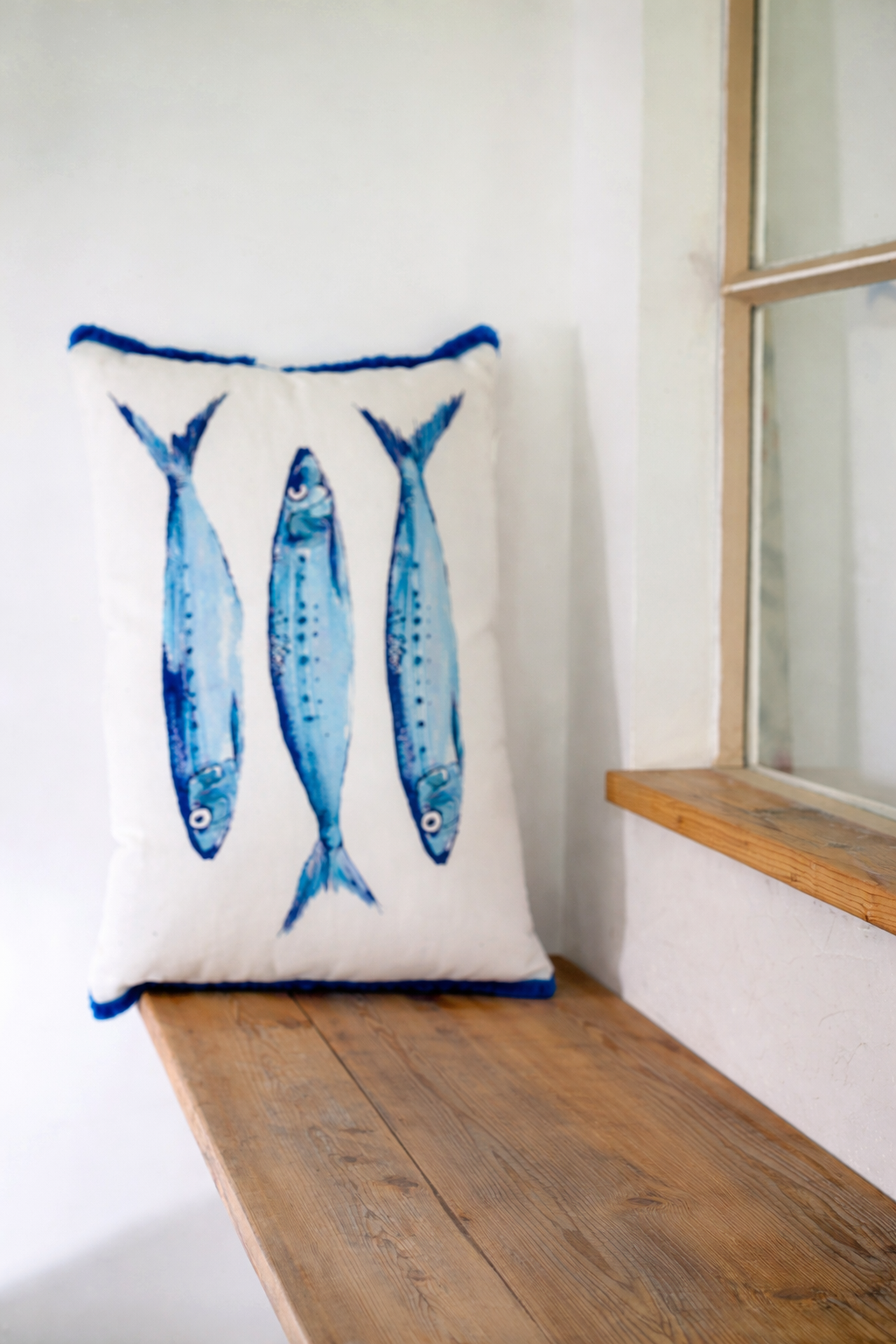 Coussin Sardines Blanc et Bleu -Jline