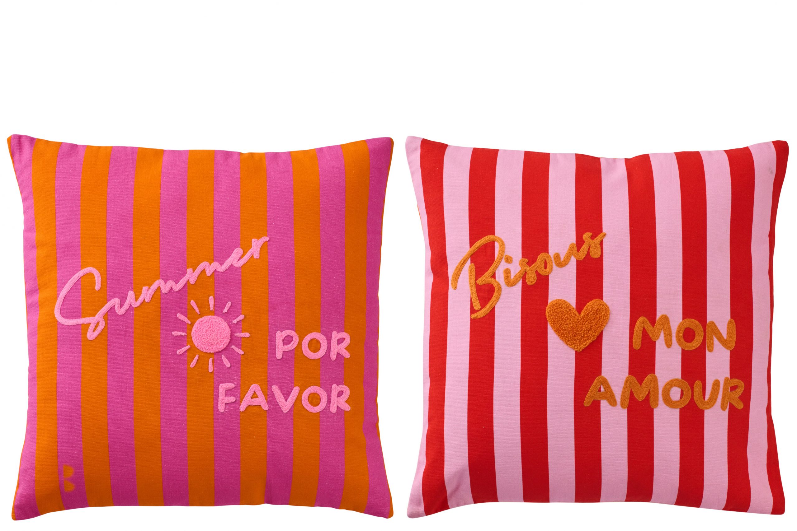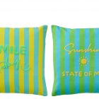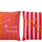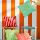 Ajoutez une touche de pep’s à votre intérieur avec ces coussins rayés colorés, ornés de messages brodés positifs.