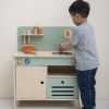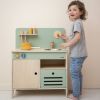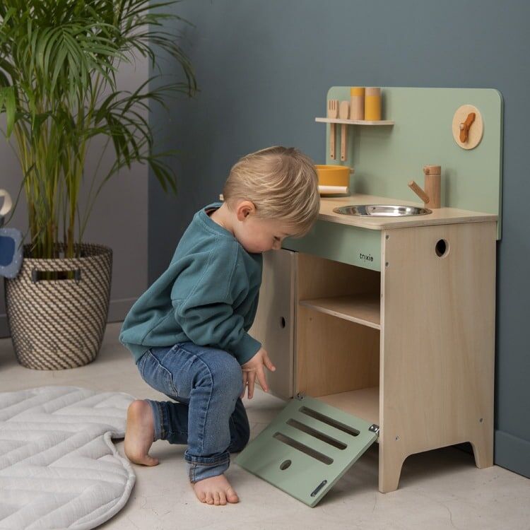 La cuisine est fabriquée en bois 100 % certifié FSC®. Toutes les peintures sur ce produit sont à base d’eau, non toxiques et sans danger pour les enfants.