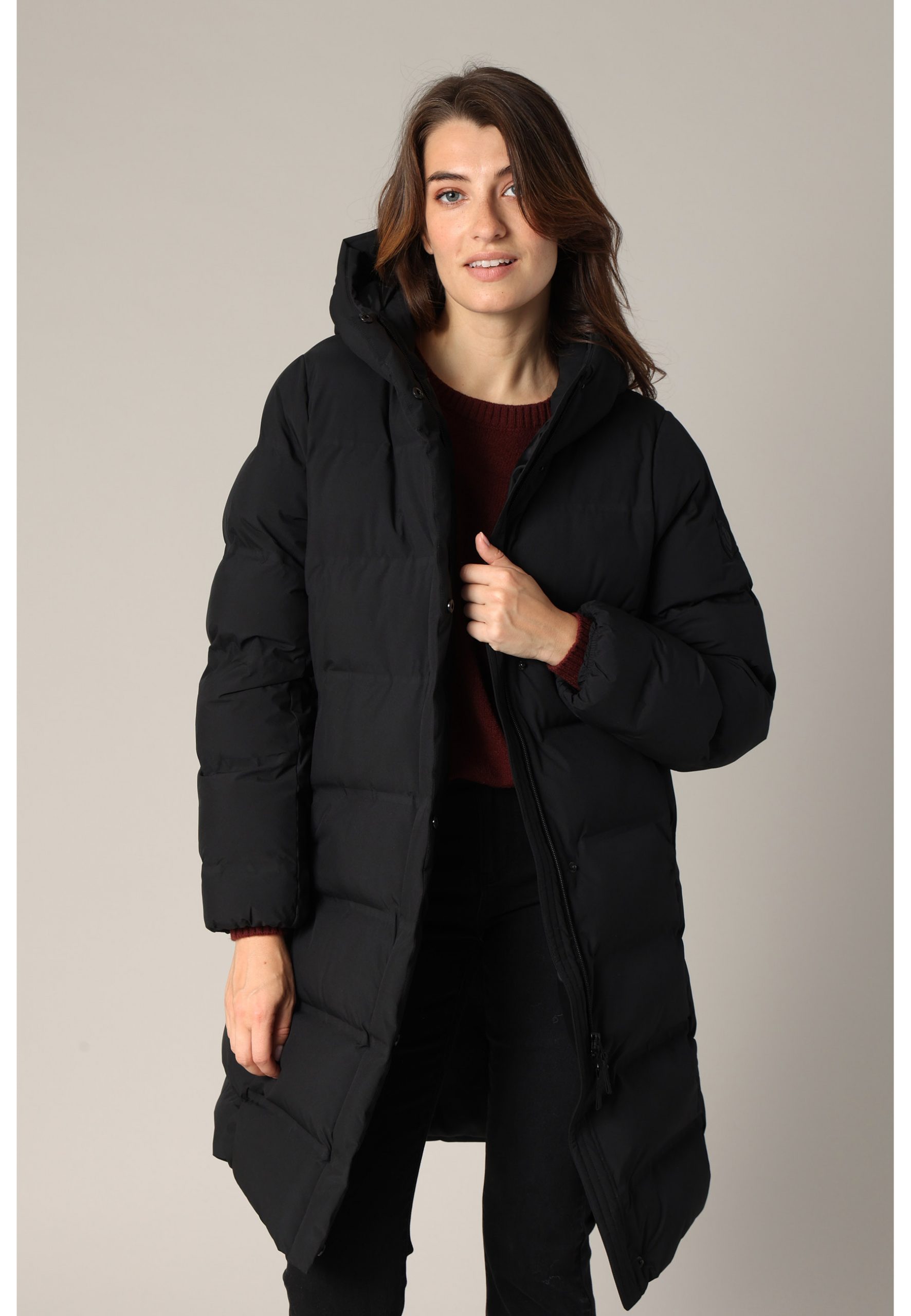Doudoune longue matelassée avec capuche enveloppante
