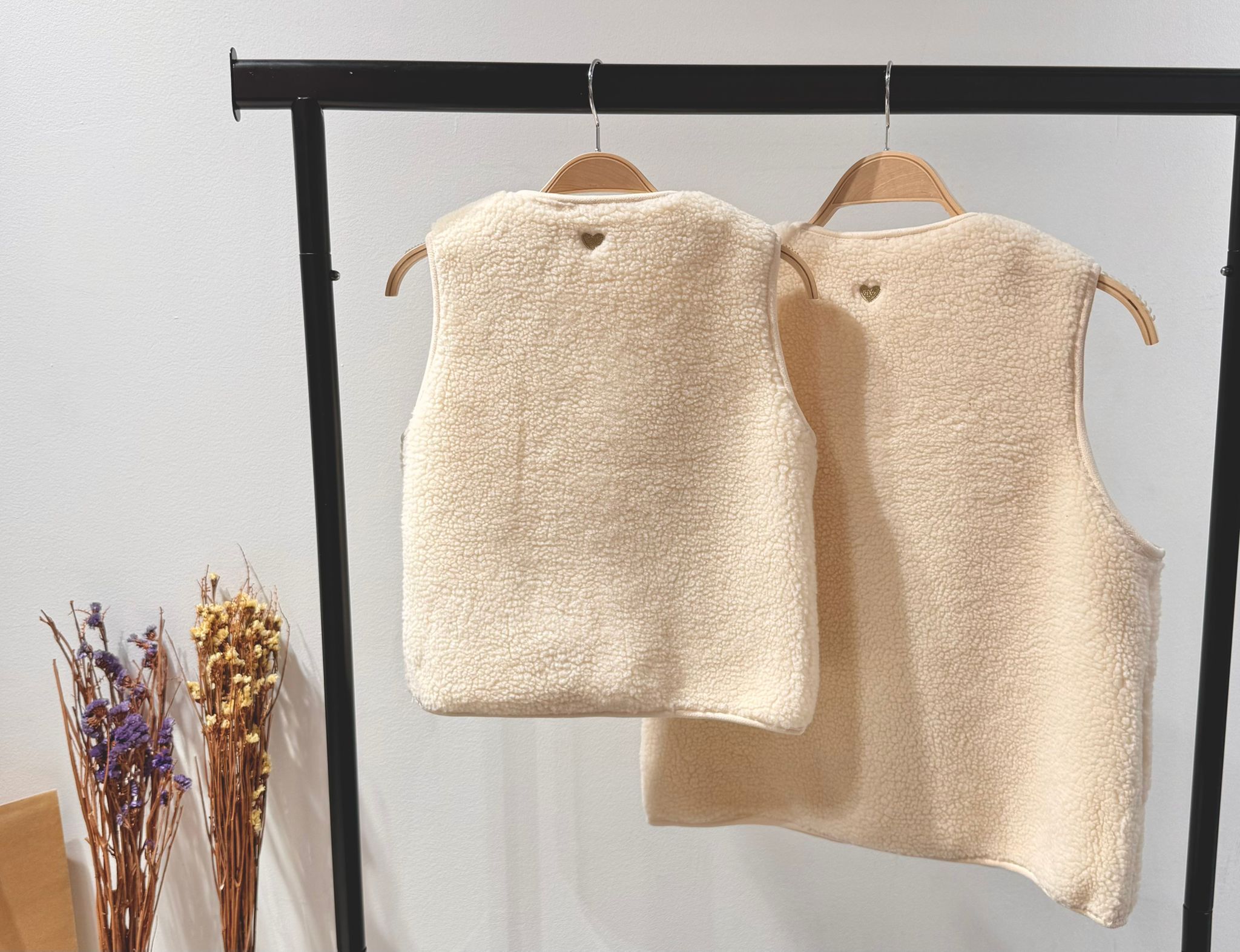 Gilet moumoute sans manche avec broderie cœur doré au dos