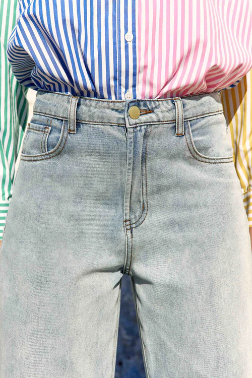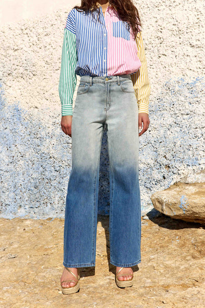 Zephyru est un jean tie and dye à la coupe droite et à la taille haute qui allonge la jambe et structure la silhouette. Son délavage en dégradé apporte du relief et attire le regard, tandis que la coupe reste nette et facile à porter au quotidien.