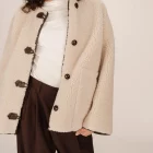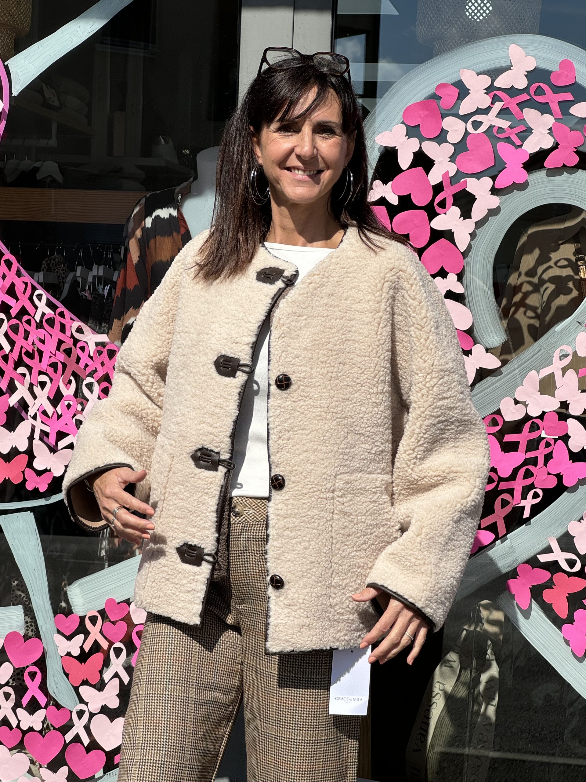 – Ouverture sur le devant avec fermetures à boucle contrastée et boutons tressés
