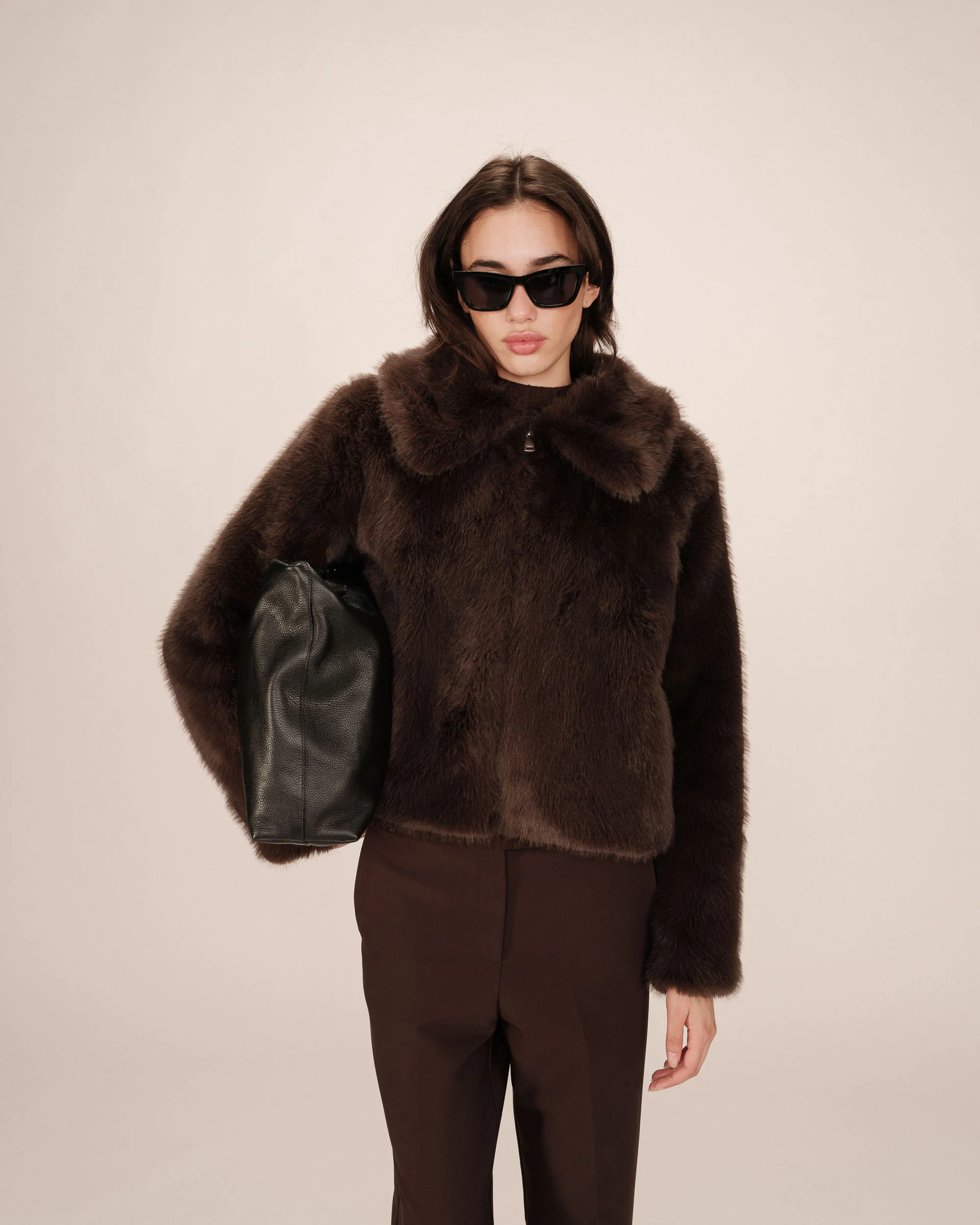 Le manteau en fausse fourrure SHONNA dessine une silhouette audacieuse et glamour. Chaud et confortable, ce modèle est un intemporel de la saison automne/hiver. Le manteau court SHONNA présente une coupe droite et une longueur courte pour une allure moderne et élégante. La pièce s’ouvre par un zip sur le devant, orné d’un curseur exclusif gravé G&M.