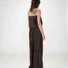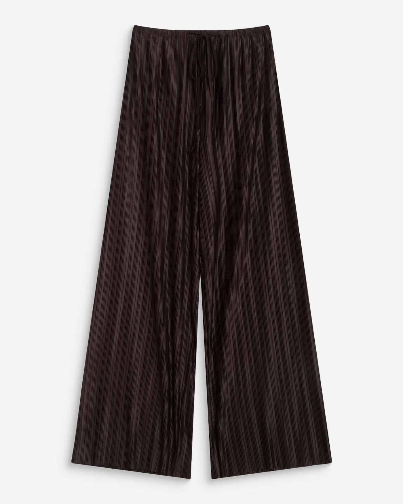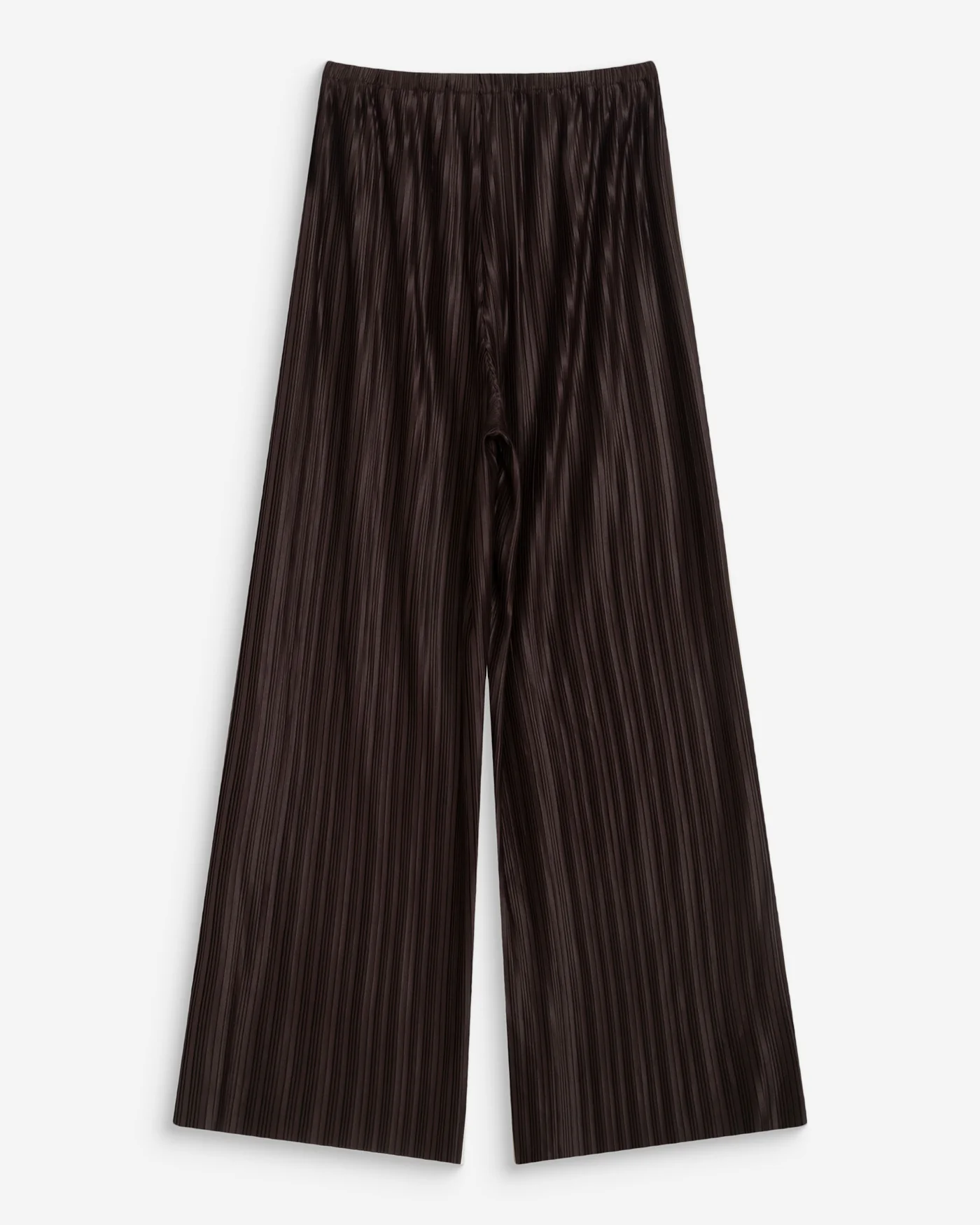 Le pantalon large WONKA est travaillé dans un tissu plissé qui accompagne le mouvement et valorise les courbes féminines. Le modèle a une coupe large et une taille élastiquée qui dessine une silhouette chic et vaporeuse.