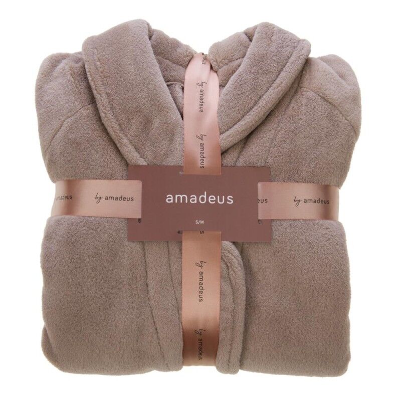 Peignoir en polyester 100% de couleur crème, signé Amadeus. Léger (750g) et doux, il offre un confort optimal pour la détente à domicile. Sa coupe classique avec ceinture et poche frontale facilite la présentation en boutique. Produit idéal pour enrichir une gamme de vêtements d’intérieur, alliant praticité et élégance discrète.