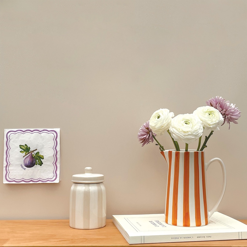 Ce pichet en faïence est parfait pour servir de l’eau, des jus ou des cocktails lors de vos repas en famille ou entre amis. Son allure rétro et son motif intemporel s’intègrent harmonieusement à toutes les ambiances, du style rustique au contemporain.