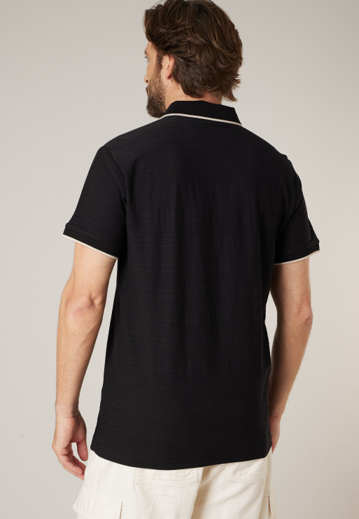 Polo regular REVOLTIX pour homme avec col polo et manches courtes, doté d’un print gomme et confectionné en 100% coton effet flammé — style décontracté, idéal pour un look léger et moderne.
