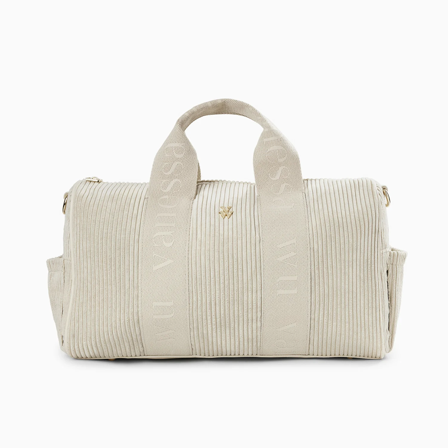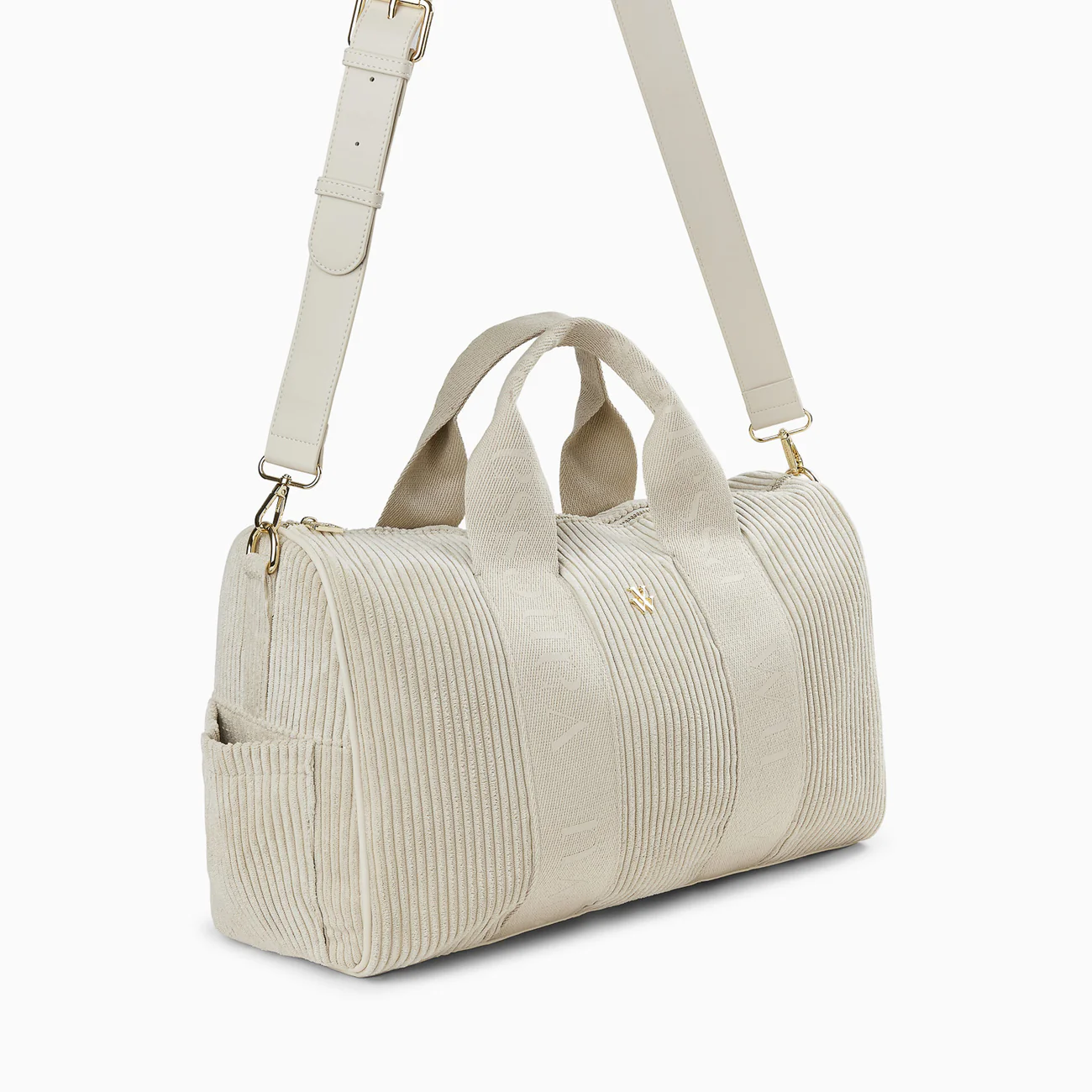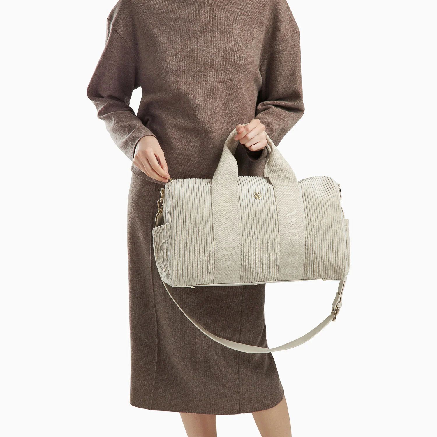 Anses débordantes en tissu beige clair à logo de couleur beige
