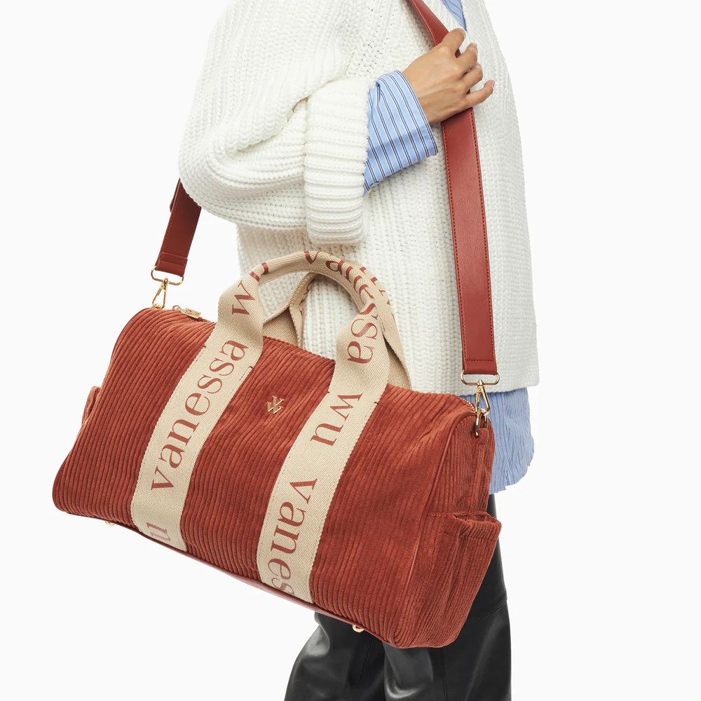 – Bandoulière amovible réglable en similicuir orange brique, à boucle et mousquetons dorés