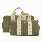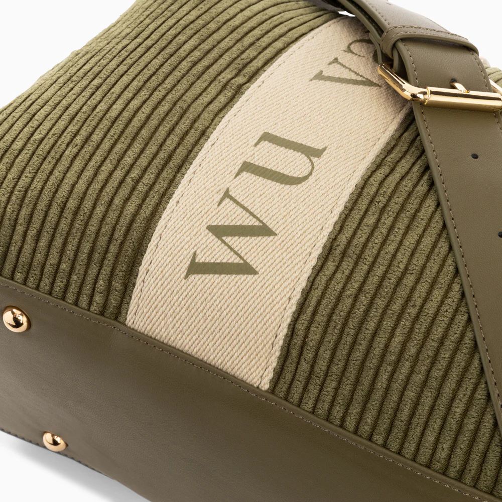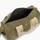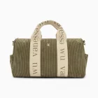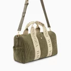 – Anses débordantes en tissu beige clair à logo vert kaki