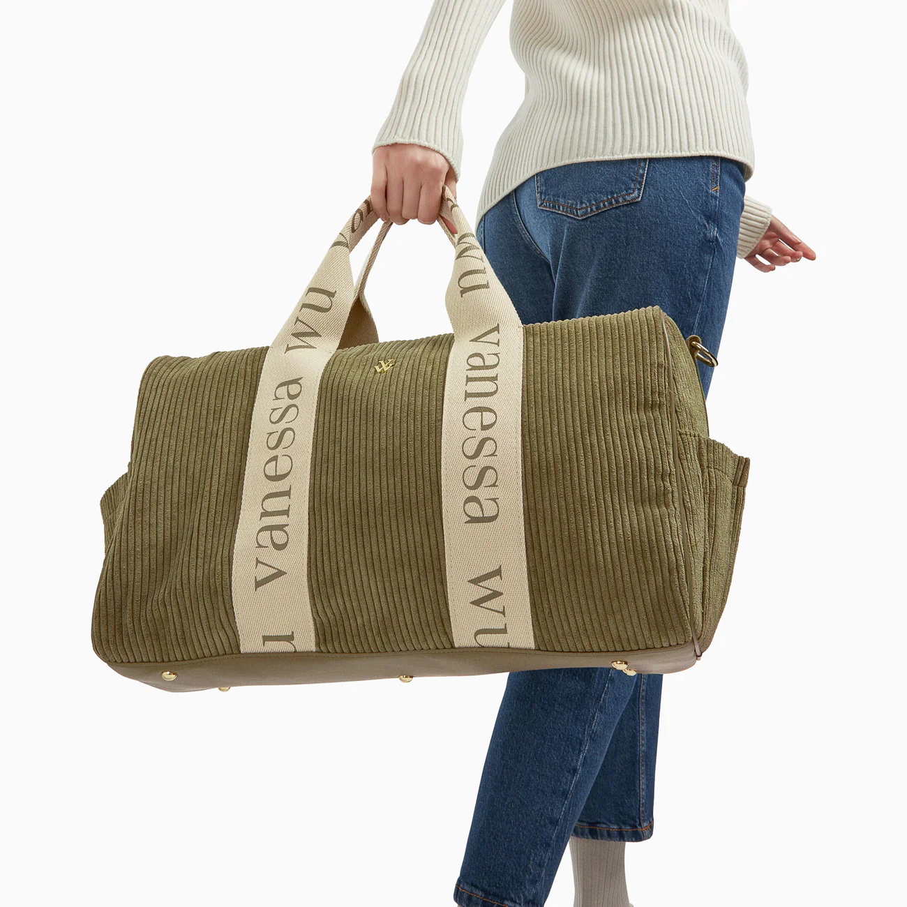 – Anses débordantes en tissu beige clair à logo vert kaki