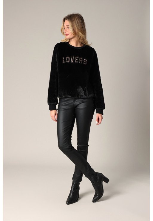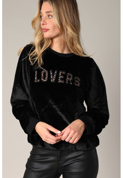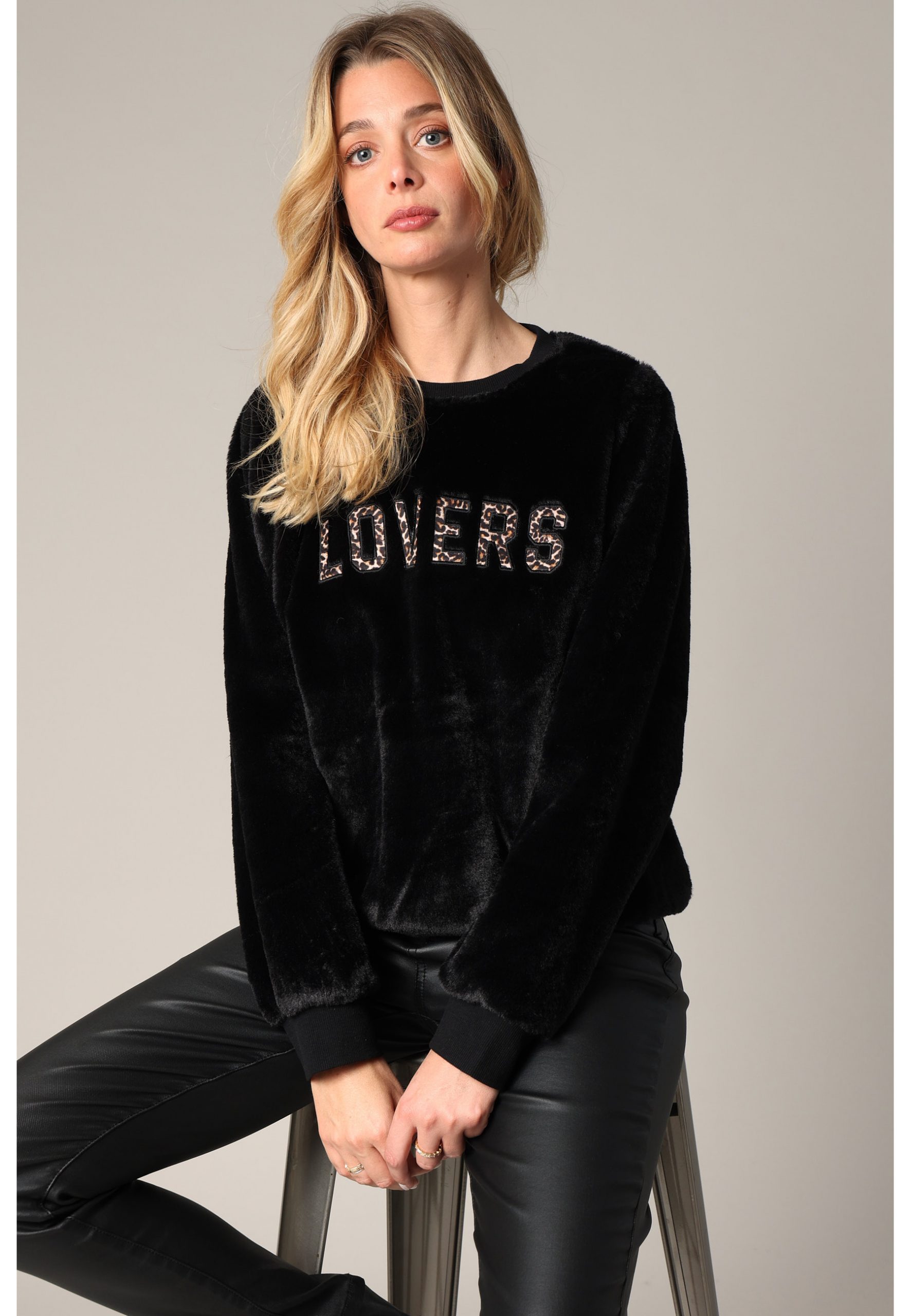 Sweat-shirt avec inscription LOVERS en relief en imprimé léopard