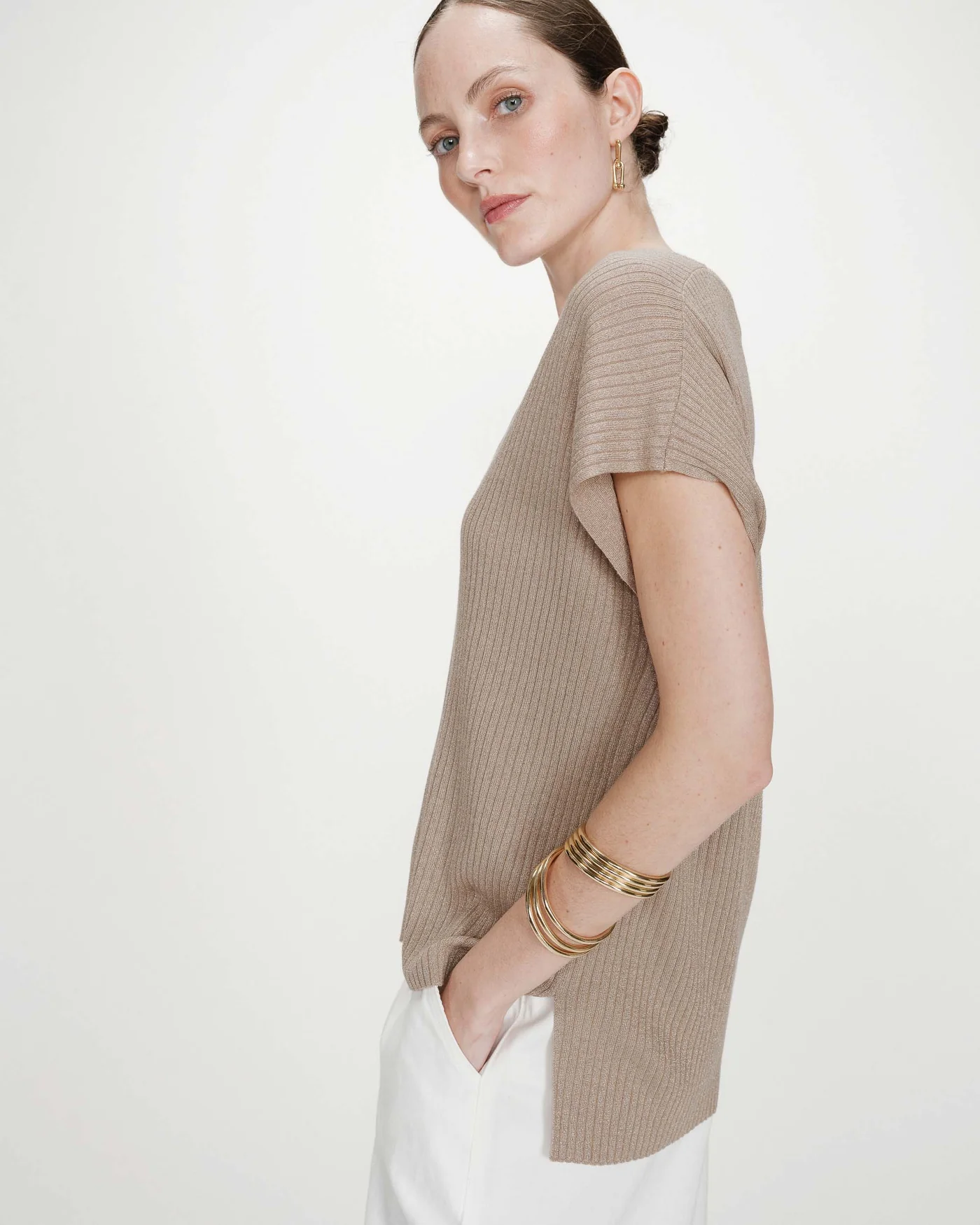 Top large sans manches en lurex